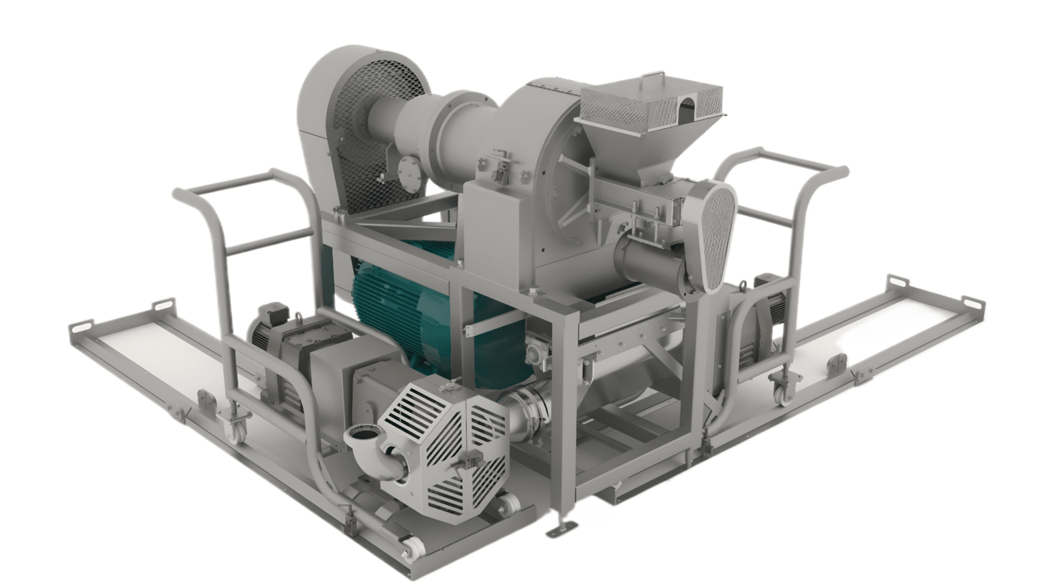 Masa Transfer and Pumping Equipment – The Masa Feeders main hopper houses counter rotating paddles that are constructed from stainless steel and an 6” to 8” plastic auger feeds the masa to the pump. A displacement pump with 3-4” ports and double wing rotors transfer masa to the sheeter head.